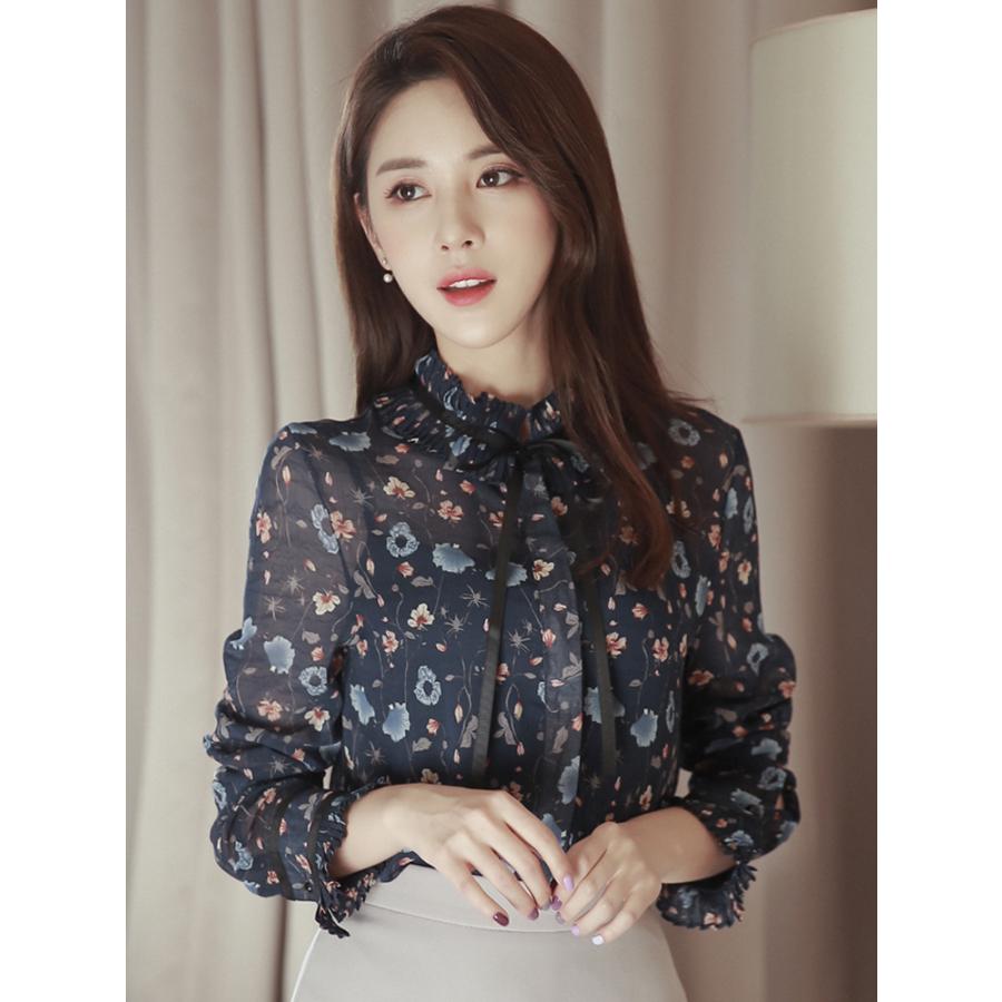 シャツ ブラウス トップス レディース 立ち襟 花柄 プリント 長袖 安い 可愛い 綺麗め 大人可愛い 上品 おしゃれ リボンタイ Yasu リラークショップ 通販 Yahoo ショッピング